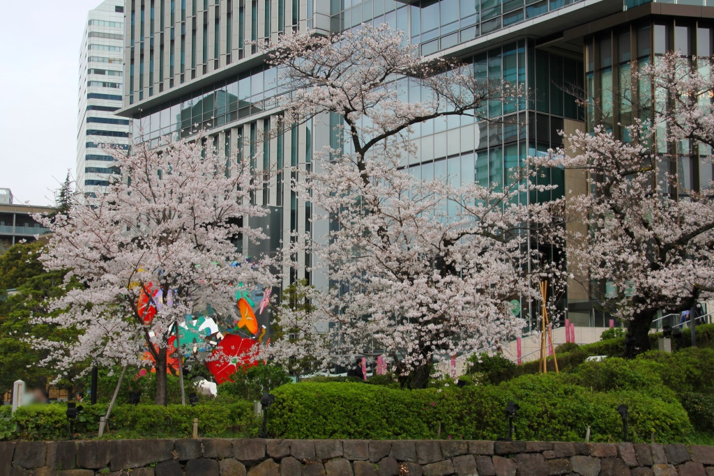 一通り園内を散策した後は、ホテルの外に出たら何やら高層ビルの前にカラフルなオブジェが目に留まったので、そちらの方に行ってみることにした。そこは東京ガーデンテラス紀尾井町というところで、オフィスやホテル、レストランなどがある複合施設のようだ。そのタワービルの前にオブジェがある。とりあえずその周りで写真を撮ることにした。